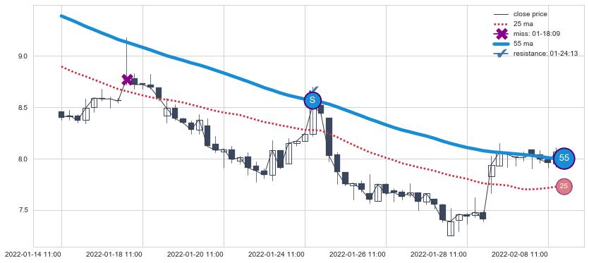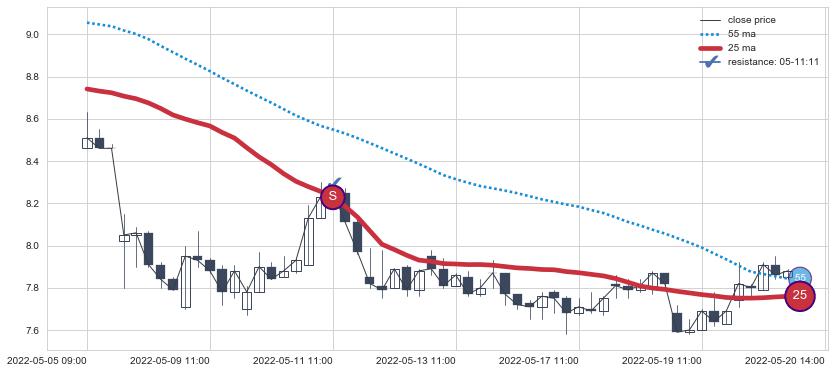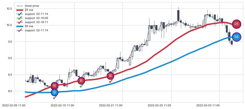 ⚂ 2022-05-25 09:00:00小时突然冒出一根大阳线,一下子顶穿三条均线且收盘价收在各条均线之上