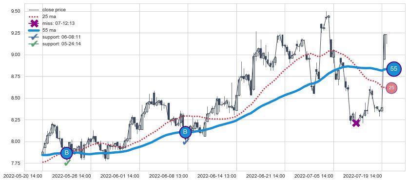 ⚂ 2022-07-11 13:00:00-小时均线向下破位,2022-07-20 13:00:00-小时重新上穿突破均线,均线支撑再次生效
