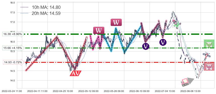 ♘ 阻力价格位16.38,可信任强度93.86%,距离最后交易2022-08-12 14:00形成的收盘价格15.04相差 +8.90%