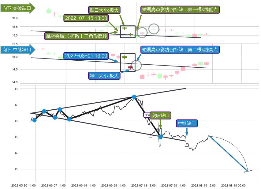 ➢ 2022-08-01 13:00形成:向下跳空【中继】缺口