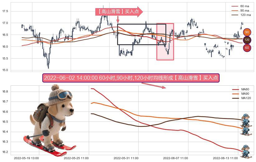 ⚀ 2022-05-25 13:00:00小时-2022-06-13 14:00:00小时显现 60小时-90小时-120小时均线 【高山滑雪】买入点 看多信号,后市看涨,买入