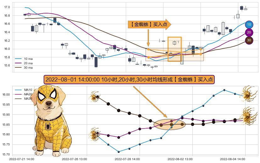 ⚀ 2022-08-01 14:00:00小时显现 10小时-20小时-30小时均线 【金蜘蛛】买入点 看多信号,后市看涨,买入
