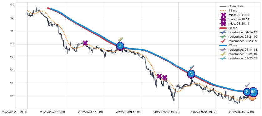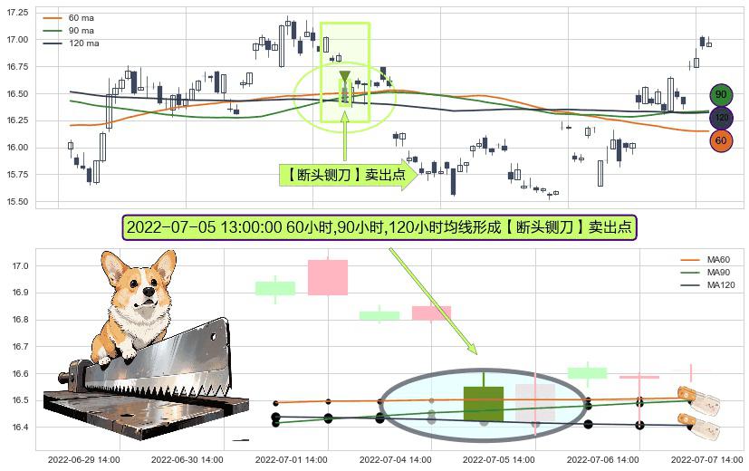 ⚀ 2022-07-05 13:00:00小时显现 60小时-90小时-120小时均线 【断头铡刀】卖出点 看空信号,后市看跌,卖出