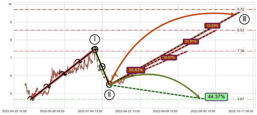 ➢ 循环浪继续向上【最高】位置(10-17:09, 9.70),匹配聚类样本比例23.82%, 可能性概率13.25%