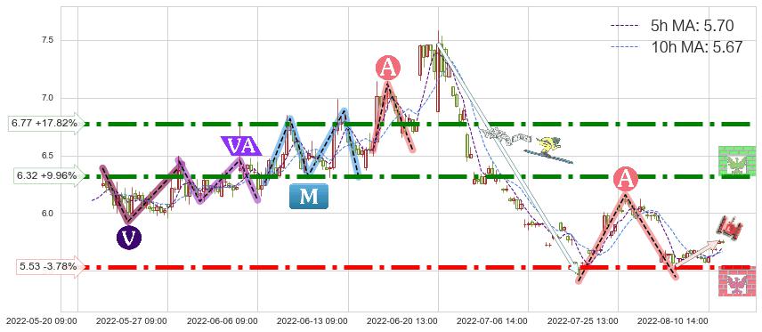♘ 阻力价格位6.77,可信任强度92.63%,距离最后交易2022-08-12 14:00形成的收盘价格5.75相差 +17.82%