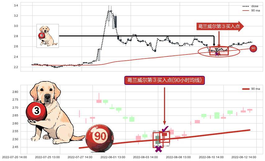 ⚀ 2022-08-04 13:00:00-小时显现 葛兰威尔均线 90小时均线 第③买入点 上升趋势的中继信号,后市看涨,买进信号