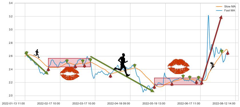 05-10 14:00至06-20 14:00 慢线与快线多次接触,存在上下穿越,有缠绕