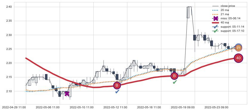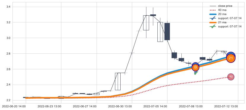 ⚂ 2022-06-23 13:00:00小时突然冒出一根大阳线,一下子顶穿三条均线且收盘价收在各条均线之上