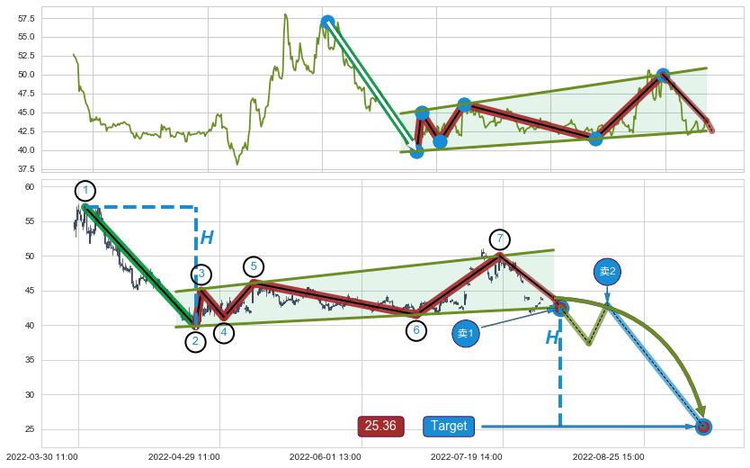 ➣ 最小中继整理跌幅→𝐇: 17.17 (𝐇旗杆的长度:旗杆起点→顶点)