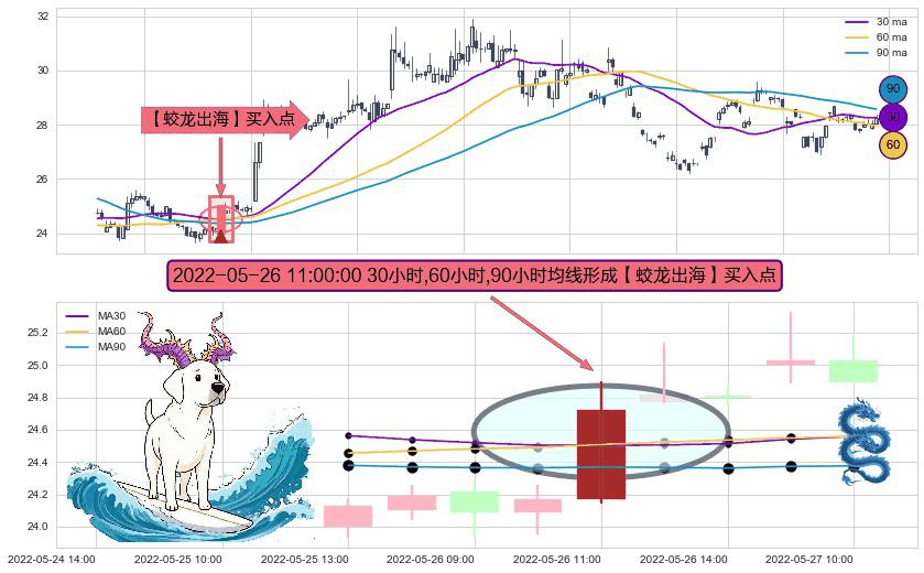 形态多维评估: ⚀ 2022-05-26 11:00:00小时显现 30小时-60小时-90小时均线 【蛟龙出海】买入点 看多信号,后市看涨,买入