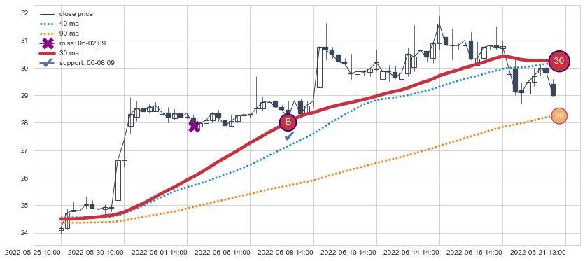 上涨趋势05-26 10:00-06-21 13:00,均线30确认关键支撑1处