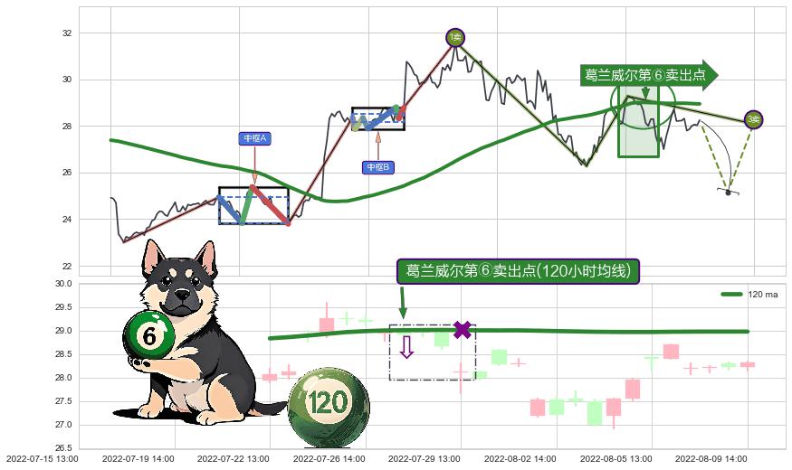 | 2 🅚:【死亡谷】卖出点 ➕ ☯️:缠论买卖点上升缠:临近3卖-猜想击穿破位3卖后延续下跌趋势(大周期趋势均值回复后小周期持续趋势跟踪) ☞ 看空信号 ⇥ 【均线】交织【图形】⇥ 综合量化分数: 29 | > |
