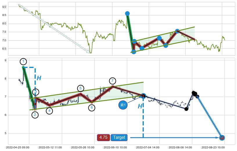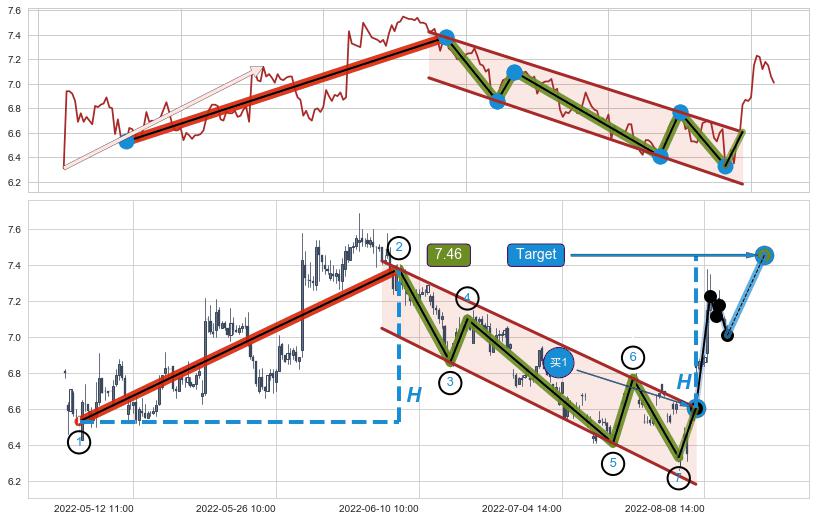 ➣ 最小中继整理跌幅→𝐇: 2.300 (𝐇旗杆的长度:旗杆起点→顶点)