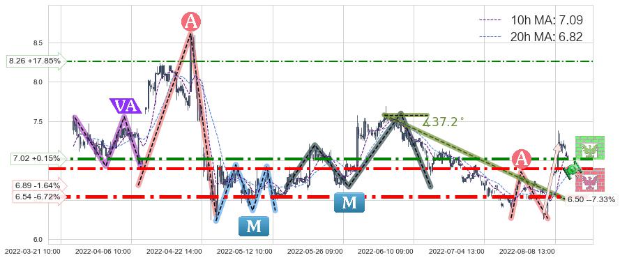 ♘ 阻力价格位7.02,可信任强度76.36%,距离最后交易2022-08-12 14:00形成的收盘价格7.01相差 +0.15%