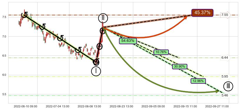 ♘ 支撑价格位6.54,可信任强度93.66%,距离最后交易2022-08-12 14:00形成的收盘价格7.01相差 -6.72%