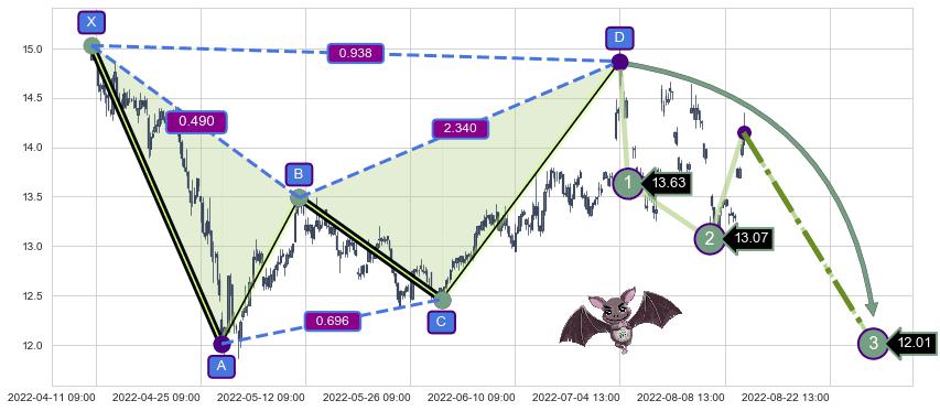 ➣ 已完成【蝙蝠】形态起点X: 04-08:13, 终点D: 07-04:13, 共253交易小时