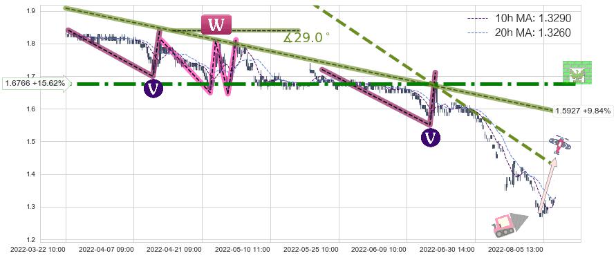♘ 阻力价格位1.6766,可信任强度98.39%,距离最后交易2022-08-12 13:00形成的收盘价格1.4500相差 +15.62%
