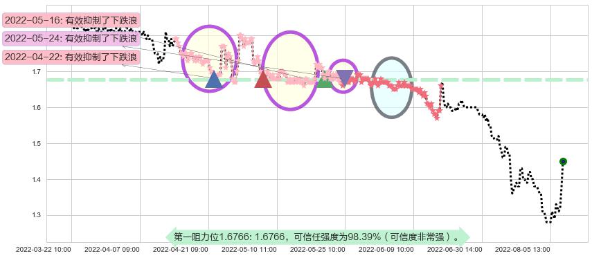 2022-04-22: 第一阻力位1.6766有效抑制了下跌浪,成功阻止了价格的继续下跌。