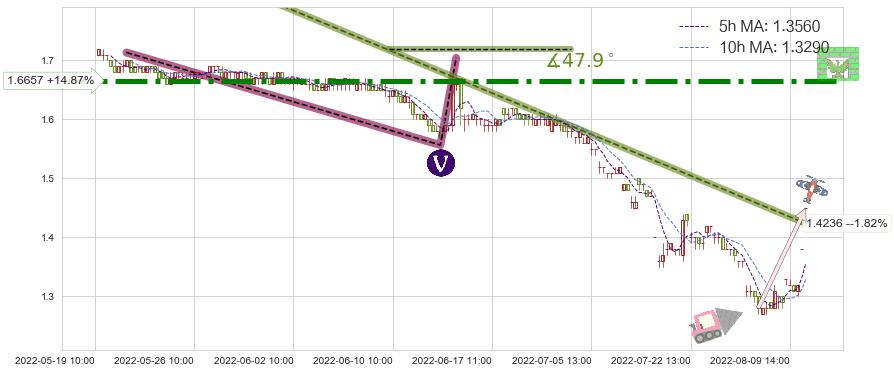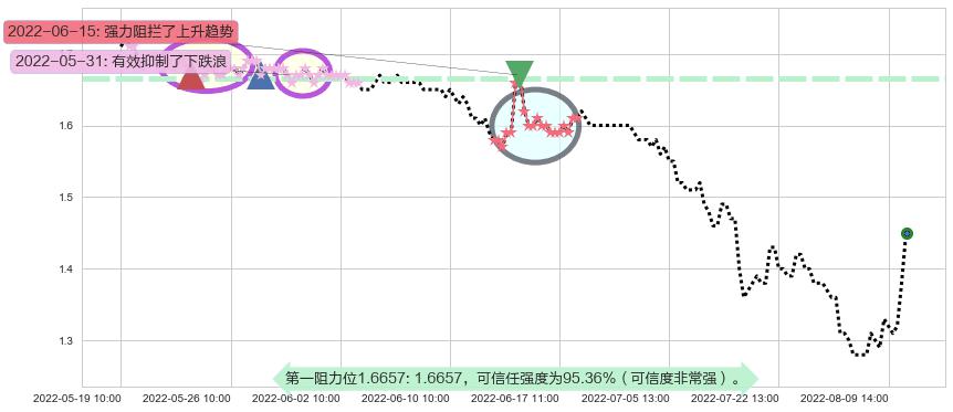 ♘ 阻力价格位1.6657,可信任强度95.36%,距离最后交易2022-08-12 13:00形成的收盘价格1.4500相差 +14.87%
