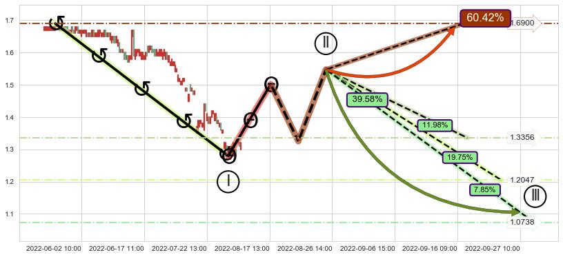 ➣ 大趋势循环浪继续向下概率39.58%