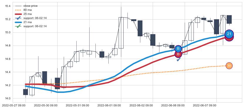上涨趋势05-27 09:00-06-07 11:00,均线25, 21确认关键支撑1处
