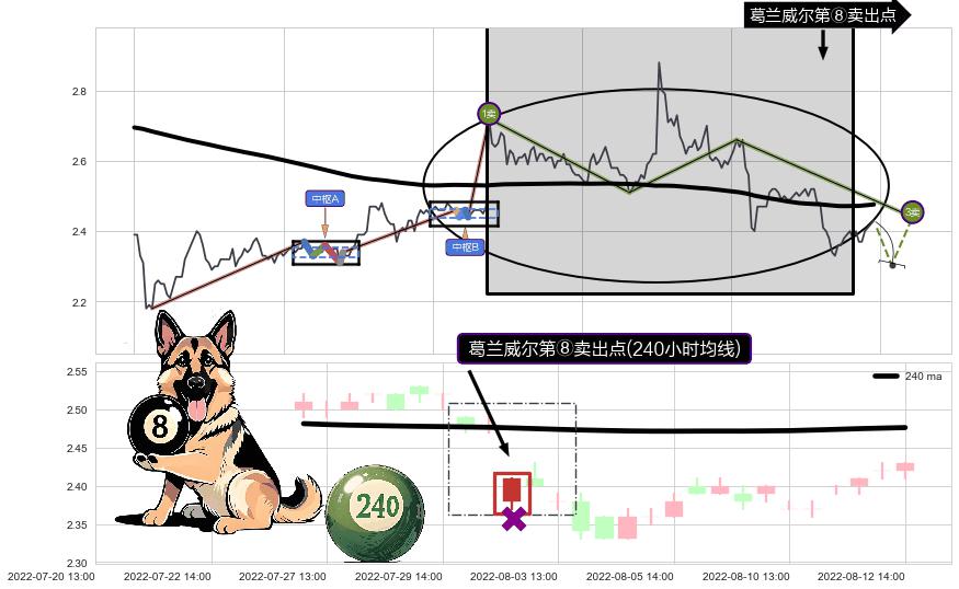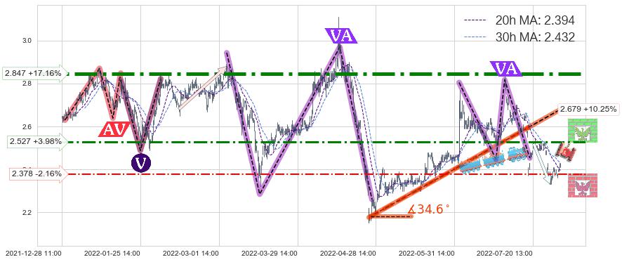 ♘ 阻力价格位2.847,可信任强度95.54%,距离最后交易2022-08-12 14:00形成的收盘价格2.430相差 +17.16%