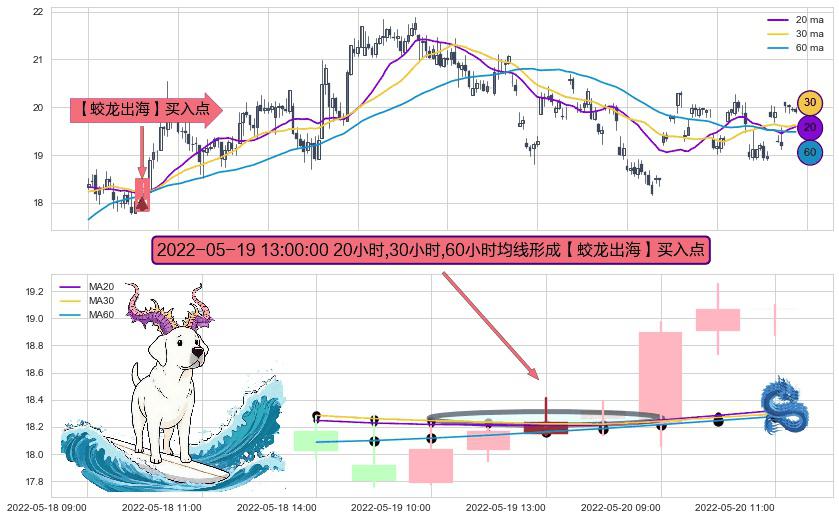 ⚀ 2022-05-19 13:00:00小时显现 20小时-30小时-60小时均线 【蛟龙出海】买入点 看多信号,后市看涨,买入