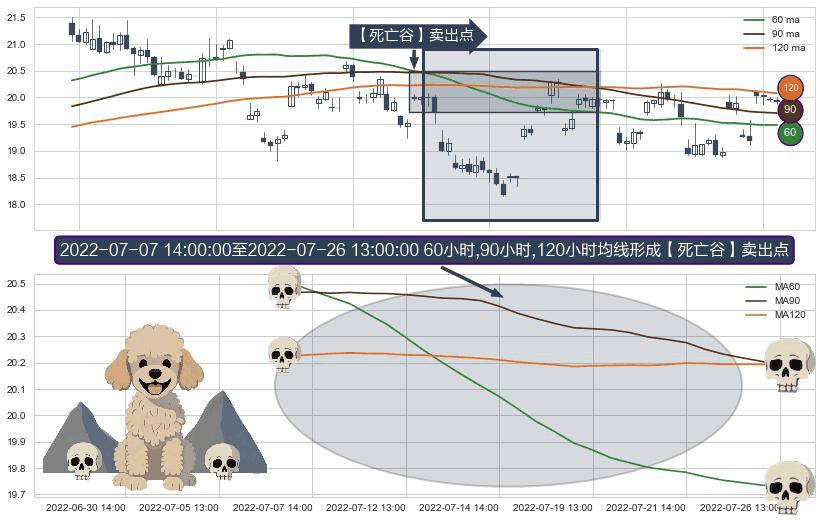 ⚀ 2022-07-08 13:00:00-小时至2022-07-26 13:00:00-小时显现 60小时-90小时-120小时均线 【死亡谷】卖出点 看空信号,后市看跌,卖出