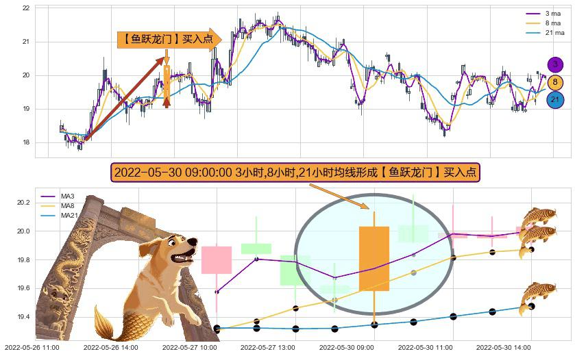 ⚀ 2022-05-30 09:00:00小时显现 3小时-8小时-21小时均线 【鱼跃龙门】买入点 看多信号,后市看涨,买入