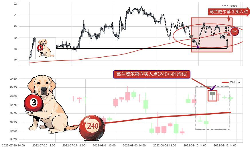 ⚀ 2022-08-11 13:00:00-小时显现 葛兰威尔均线 240小时均线 第③买入点 上升趋势的中继信号,后市看涨,买进信号