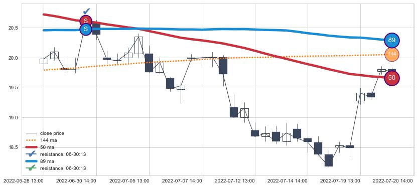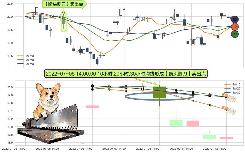 ⚀ 2022-07-08 14:00:00小时显现 10小时-20小时-30小时均线 【断头铡刀】卖出点 看空信号,后市看跌,卖出