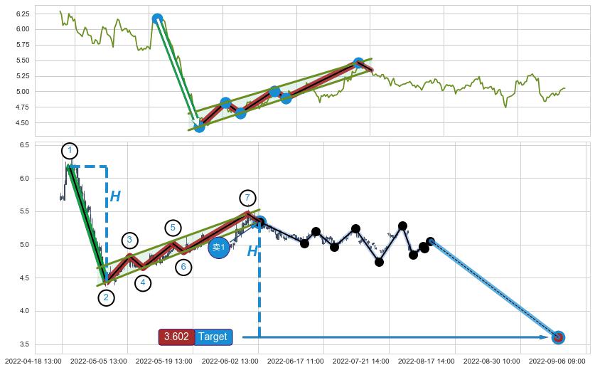 ➣ 【仅预测突破】最后价格:5.05与预测突破价格:4.74→【空间临近】后续最小【反转】第一目标价格→(08-25:14: 4.08 )