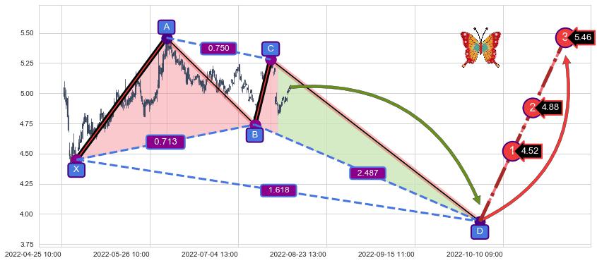 ➣ 未完成【蝴蝶】形态起点X: 04-28:13, 已到达C点: 07-28:14, 预测最终D点: 10-03:13, 共444交易小时