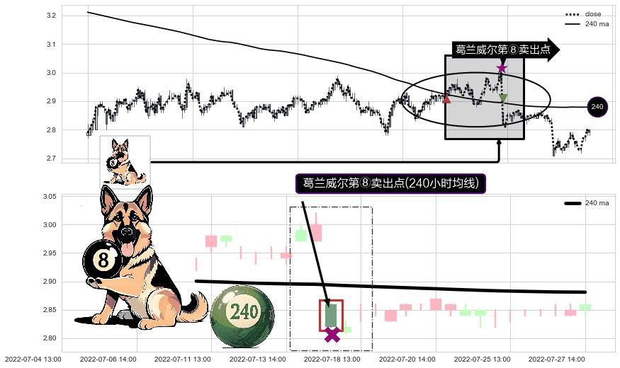⚀ 2022-07-15 13:00:00-小时显现 葛兰威尔均线 240小时均线 第⑧卖出点 下降趋势的中继信号,后市看跌,卖出信号