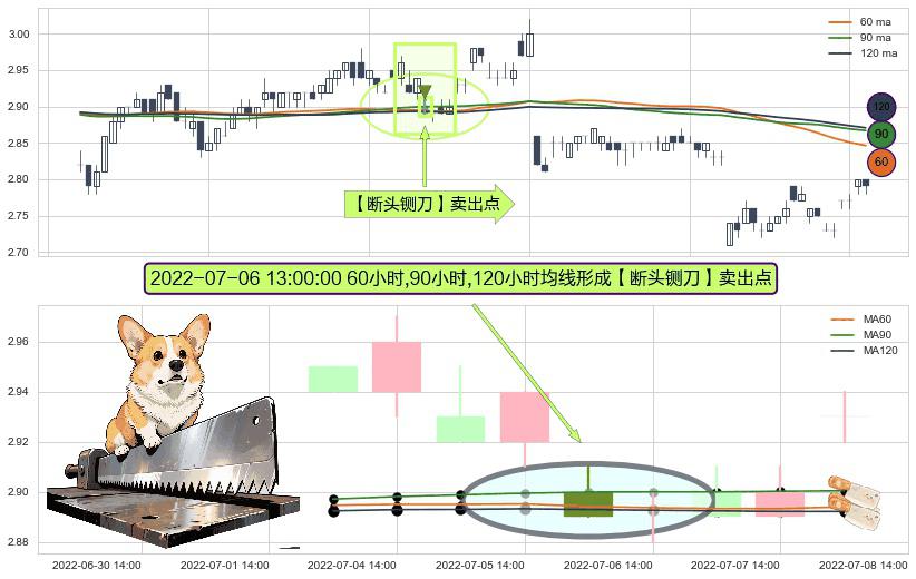 ⚀ 2022-07-06 13:00:00小时显现 60小时-90小时-120小时均线 【断头铡刀】卖出点 看空信号,后市看跌,卖出