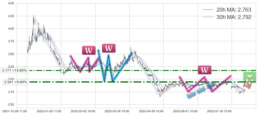 ♘ 阻力价格位2.941,可信任强度79.87%,距离最后交易2022-08-12 14:00形成的收盘价格2.790相差 +5.40%