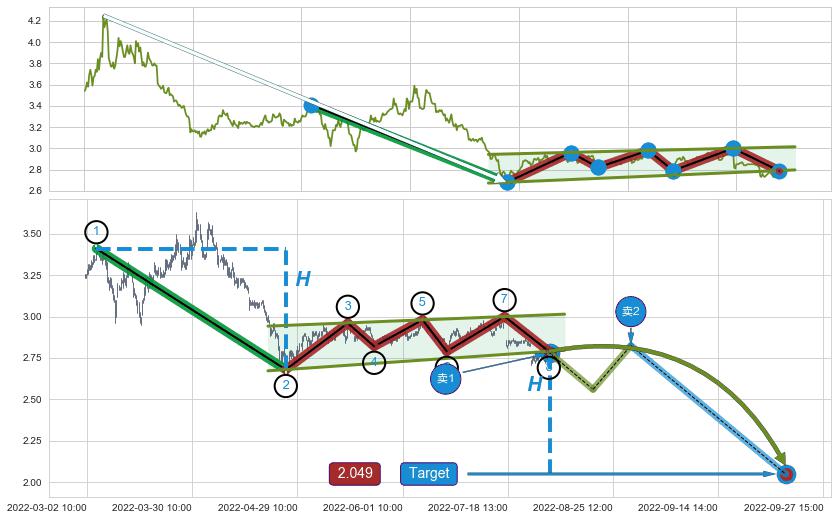♘ 阻力价格位3.171,可信任强度65.43%,距离最后交易2022-08-12 14:00形成的收盘价格2.790相差 +13.65%