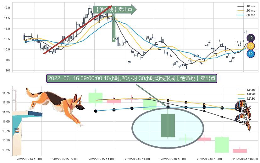 形态多维评估: ⚀ 2022-06-16 09:00:00小时显现 10小时-20小时-30小时均线 【绝命跳】卖出点 看空信号,后市看跌,卖出