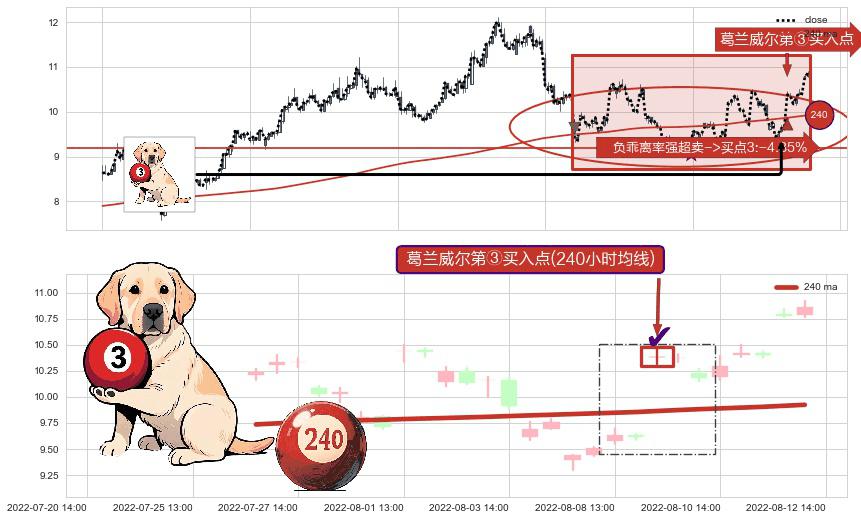 形态多维评估: ⚀ 2022-08-09 13:00:00-小时显现 葛兰威尔均线 240小时均线 第③买入点 上升趋势的中继信号,后市看涨,买进信号