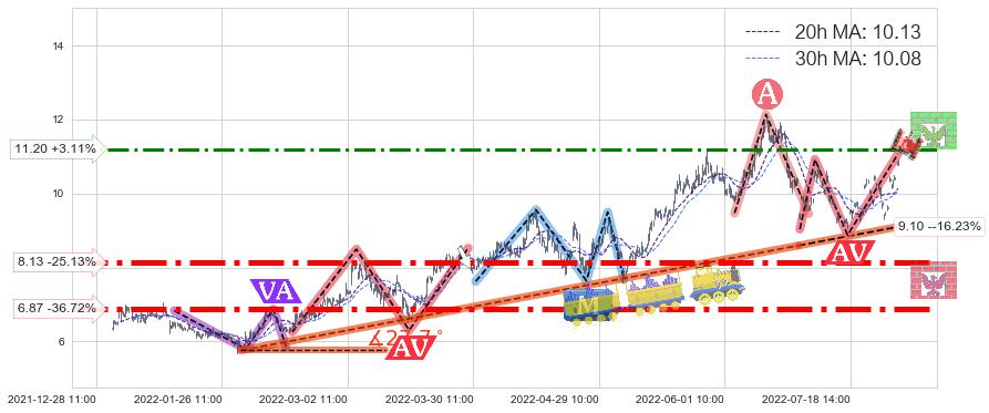 ♘ 支撑价格位8.13,可信任强度96.50%,距离最后交易2022-08-12 14:00形成的收盘价格10.86相差 -25.13%
