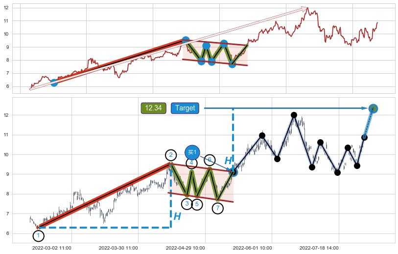 ➣ 最小中继整理涨幅→𝐇: 3.220 (𝐇旗杆的长度:旗杆起点→顶点)