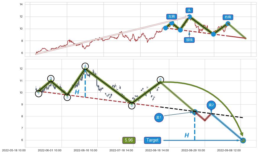 ➣ 最小反转跌幅→𝐇: 2.405 (头部与颈线垂直距离)