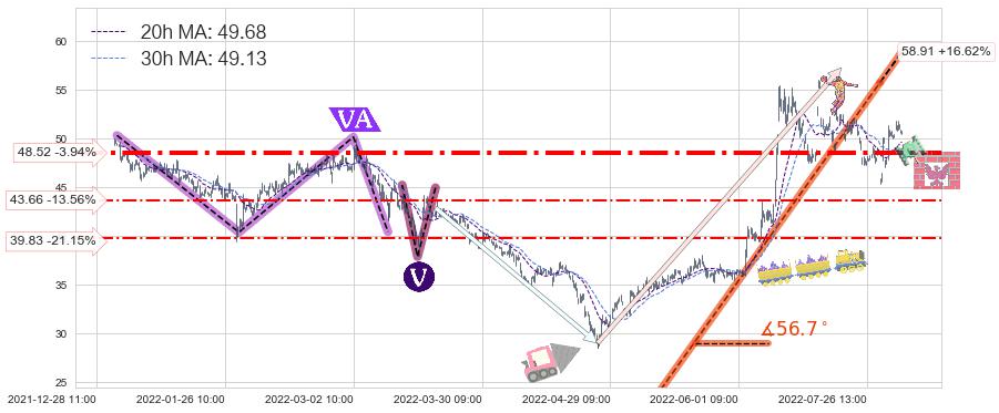 ♘ 支撑价格位48.52,可信任强度78.92%,距离最后交易2022-08-12 14:00形成的收盘价格50.51相差 -3.94%