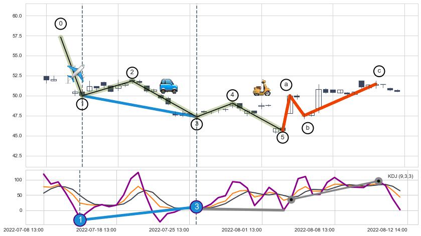 ➢ a,c调整浪MACD, RSI, KDJ走势都【未出现】背离,abc走势延续, 5浪反转概率增强