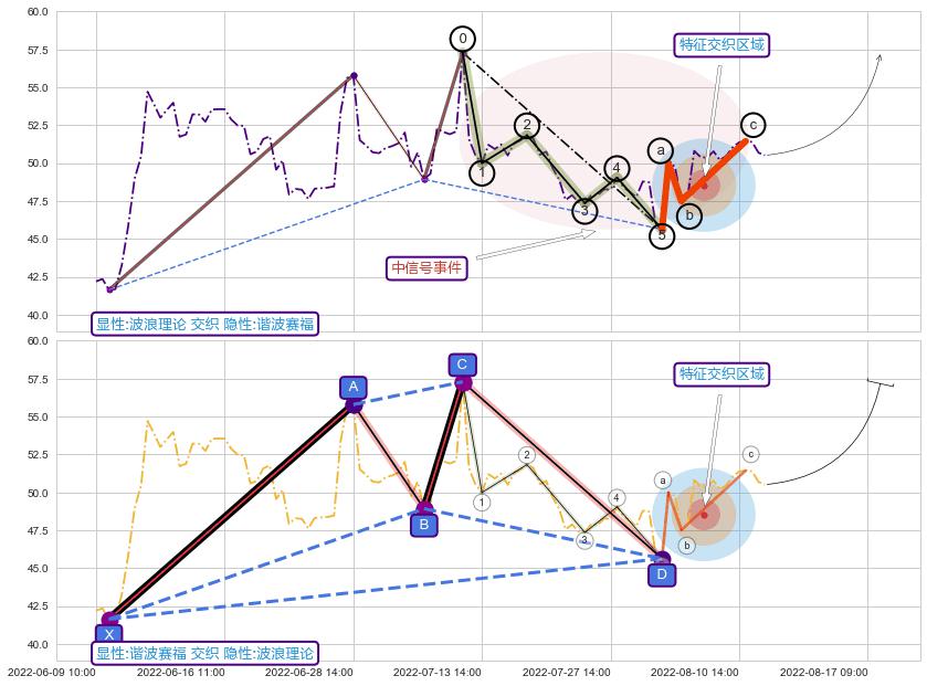 ➢ 循环浪继续向下【最高】位置(08-22:13, 44.49),匹配聚类样本比例23.56%, 可能性概率11.45%