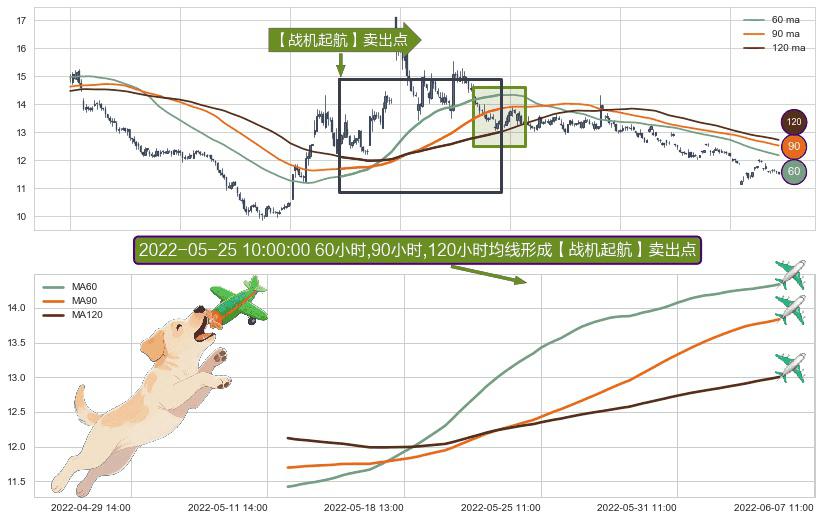 ⚀ 2022-05-12 11:00:00小时-2022-06-06 11:00:00小时显现 60小时-90小时-120小时均线 【战机起航】卖出点 看空信号,后市看跌,卖出
