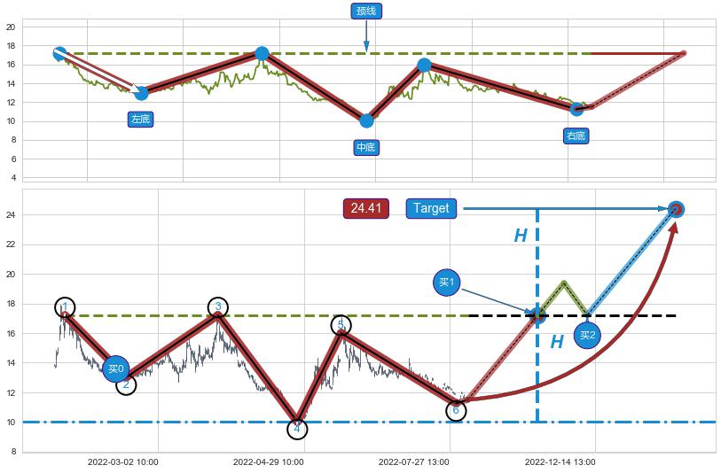 从2021-12-28 14:00至2022-02-17 14:00,共包含155个小时,阶段股价下跌-1.21%,阶段股价变动位移路程比: 1 : 124