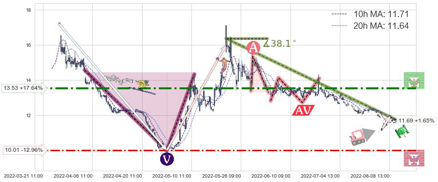 ♘ 阻力价格位13.53,可信任强度74.44%,距离最后交易2022-08-12 14:00形成的收盘价格11.50相差 +17.64%