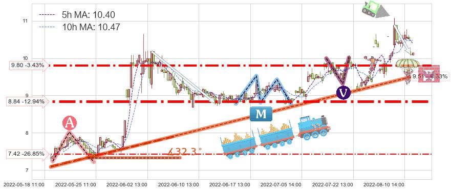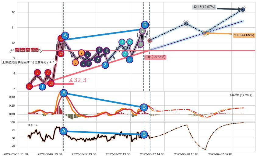 ➣ 预测:2022-08-30 11:00,【试探支撑】稳定目前上涨趋势的前提下,预测价格:10.62