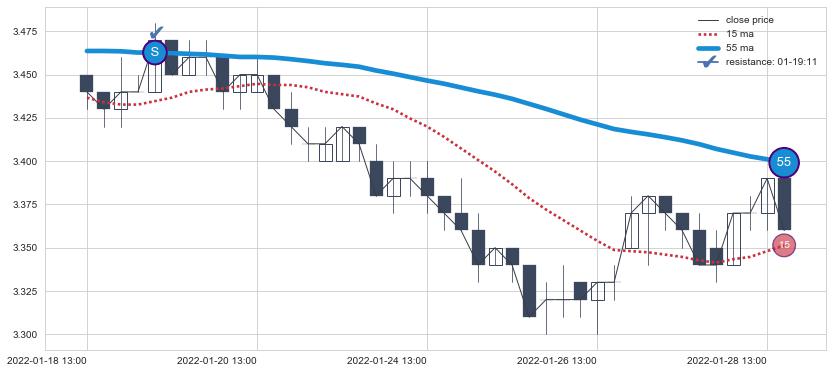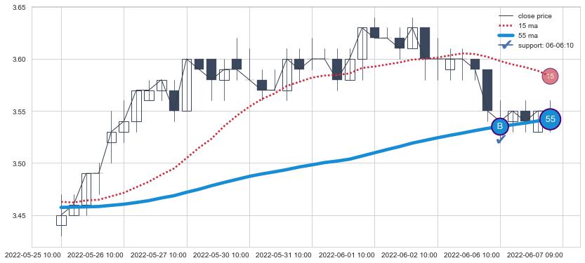 ⚂ 2022-07-11 13:00:00小时突然冒出一根大阴线,一下子下穿三条均线且收盘价收在各条均线之下